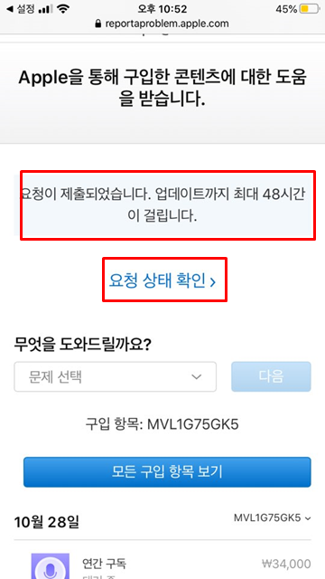 문제는 환불 요청 선택,