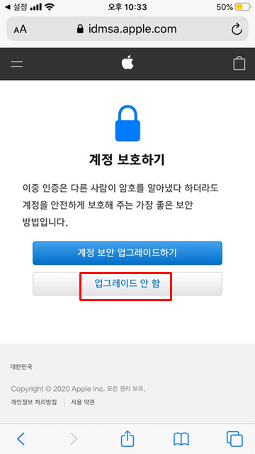 계정 보안 업그레이드 안 함 눌러 주었습니다.